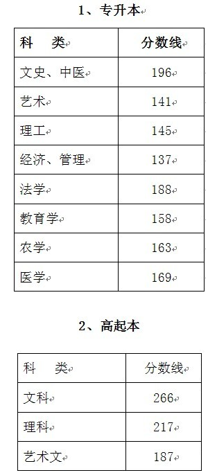 2013年浙江省成人高校招生录取分数线