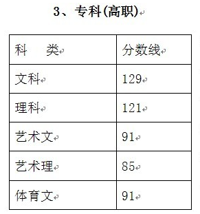 2011年浙江省成人高校招生录取分数线