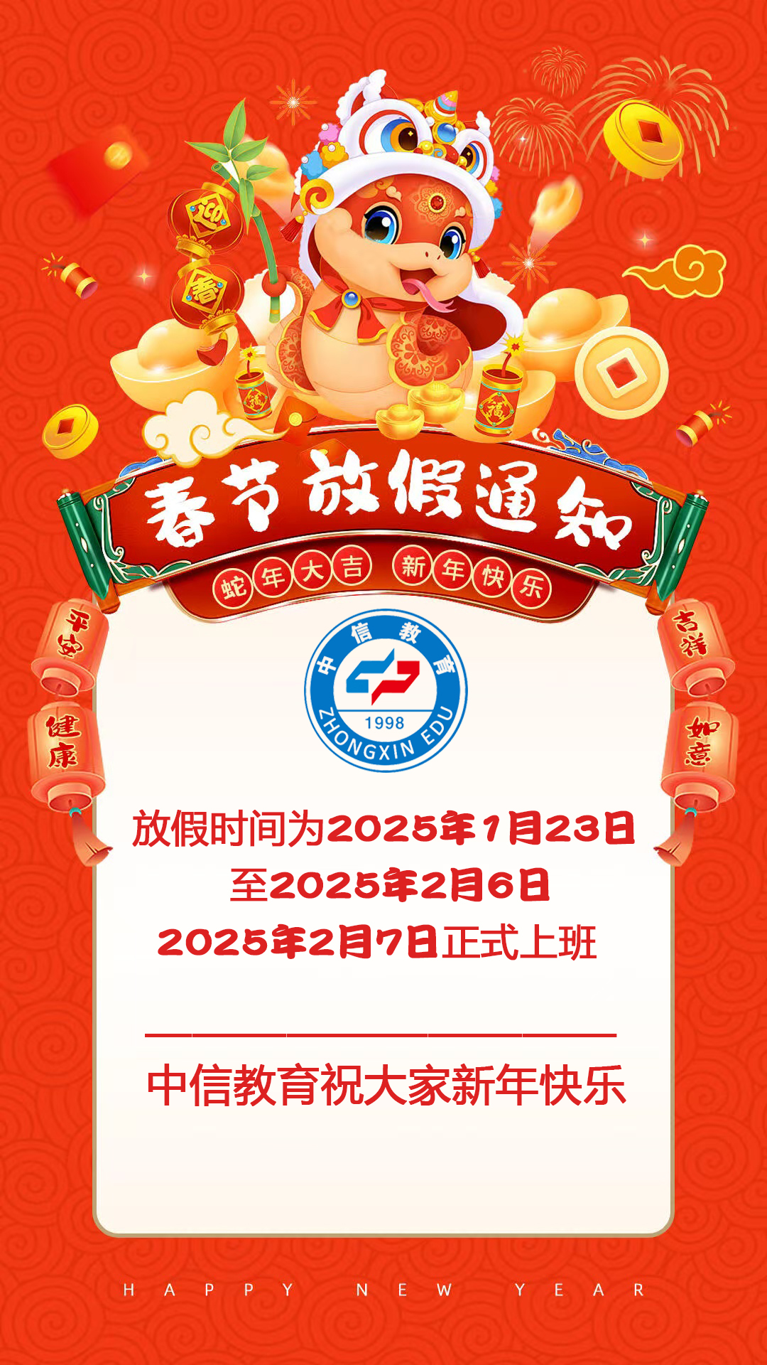 中信教育春节放假通知