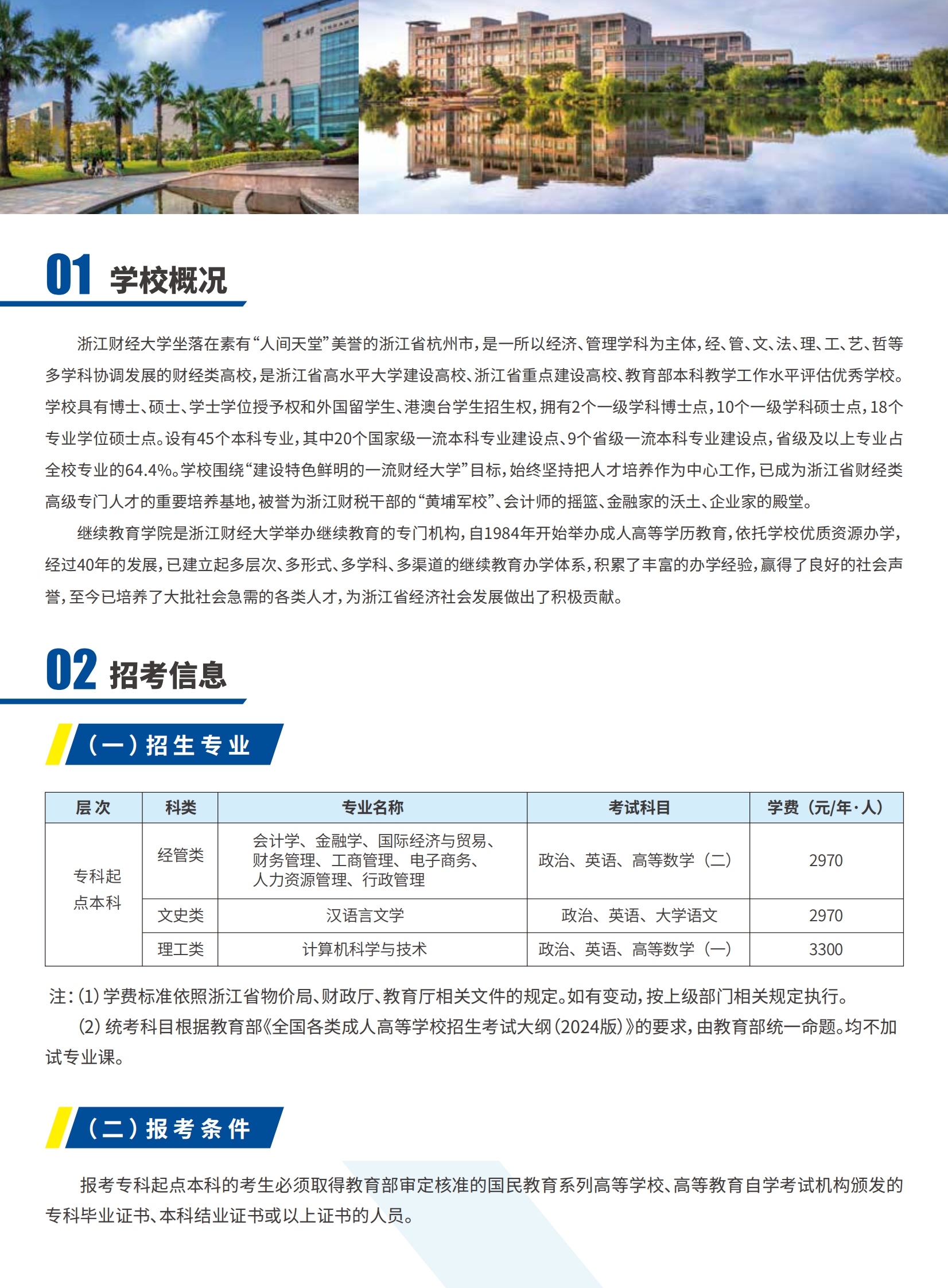浙江财经大学成人高等学历招生简章