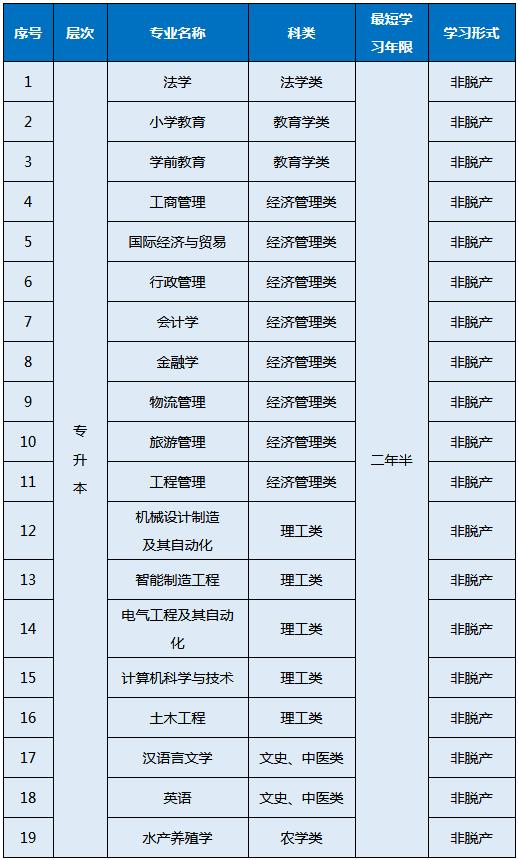(1)专升本:取得教育部审核的国民教育系列高等学校、高等教育自学考试机构颁发的专科及以上毕业证书的在职人员和有志青年。